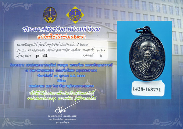 พระสมเด็จ ลาภผล คูณทวี รุ่น เสาร์ 5 ปีระกา ( เนื้อโลหะ ) พ.ศ.2536 ( พร้อมเลี่ยมกันน้ำ ) |