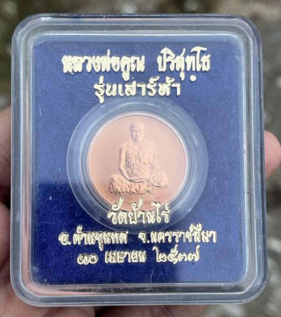 เหรียญหลวงพ่อคูณ ปริสุทโธ รุ่น จตุพร บารมีแผ่ไพศาล ออกวัดบ้านไร่ ปี 2537 เนื้อ นวะพิมพ์กรรมการหลังแบบ หมายเลข 312 มีจาร เคาะเดียวแดง |