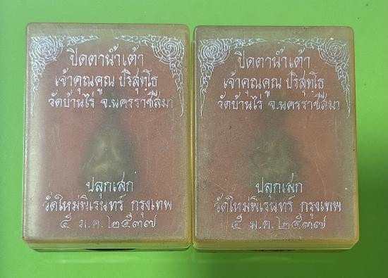 พระเนื้อเงิน ปิดตายันต์ยุ่ง คูณลาภมหาลาโภ หลวงพ่อคูณ วัดบ้าน ไร่ ปี 2536 พร้อมใบประกาศ |