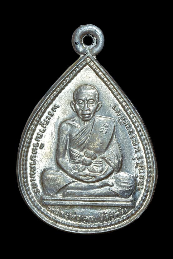 เหรียญหยดน้ำหลวงพ่อคูณ รุ่นสร้างมณฑป เนื้อเงิน ปี 2534 พร้อมเลี่ยม |