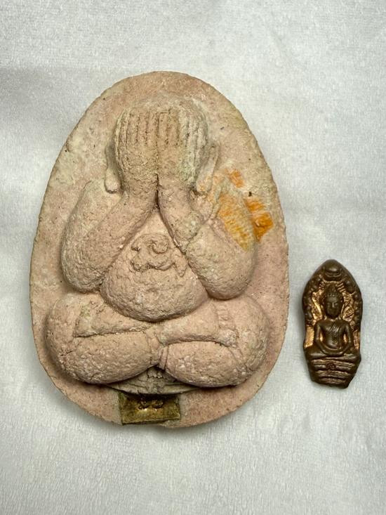 พระผง 2 องค์ (1.)พระผงรูปเหมือนแจกแบงค์ รุ่น เสาร์ห้า คูณพันล้าน พ.ศ.2537 , (2.)พระผงรูปเหมือนนั่งข้างครึ่งองค์ ฝังตะกรุด รุ่น อุปถัมถ์สร้างอุโบสถ วัดใหญ่สีคิ้ว พ.ศ.2537 ( กล่องเดิม ) |