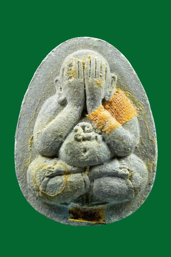 พระปิดตาคูณลาภ ( เนื้อผงเขียวอมเทา ผสมผงเก่าสมเด็จบึงพระยาสุ เรนทร์ ) พ.ศ.2517 |