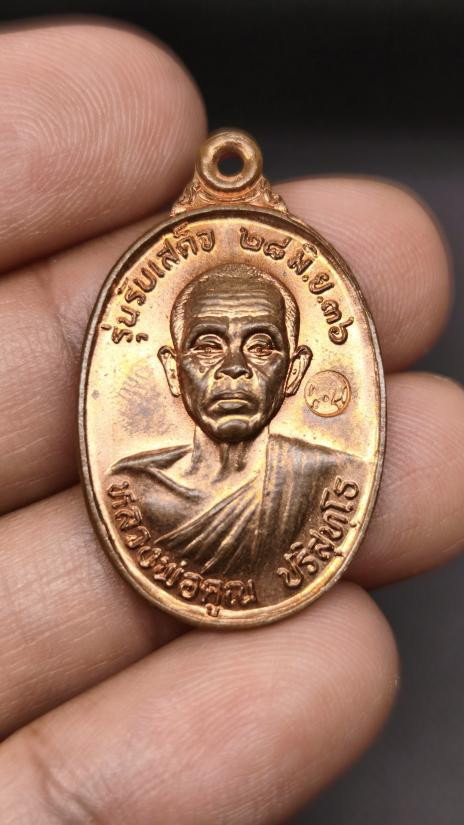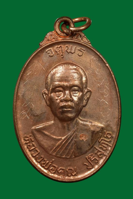 เหรียญรูปไข่ หลวงพ่อคูณ รุ่นคุณพระเทพประทานพร เนื้อฝาบาตร ปั๊มแตก พ.ศ. 2536 ตอกโค้ด พร้อมซองเดิม |