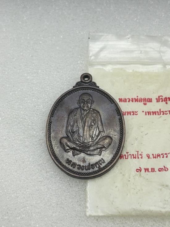 เหรียญหลวงพ่อคูณ วัดบ้านไร่ รุ่นนั่งพานชนะมาร เนื้อนวโลหะ ปี 2537 จ.นครราชสีมา (หมายเลข 4602)+ บัตร g pra ครับ |