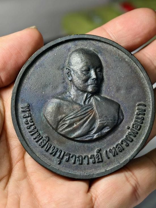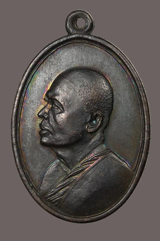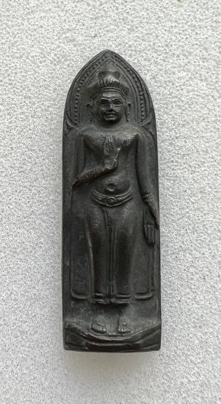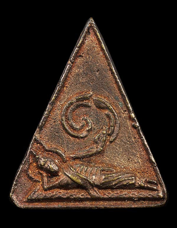 พระร่วง หลังธรรมจักร หลวงพ่อแพ วัดพิกุลทอง จะ.สิงห์บุรี (พิมพ์ใหญ่) ปี 2516 เนื้อทองแดงรมดำ ตอกโค๊ตดอกจันทร์ |