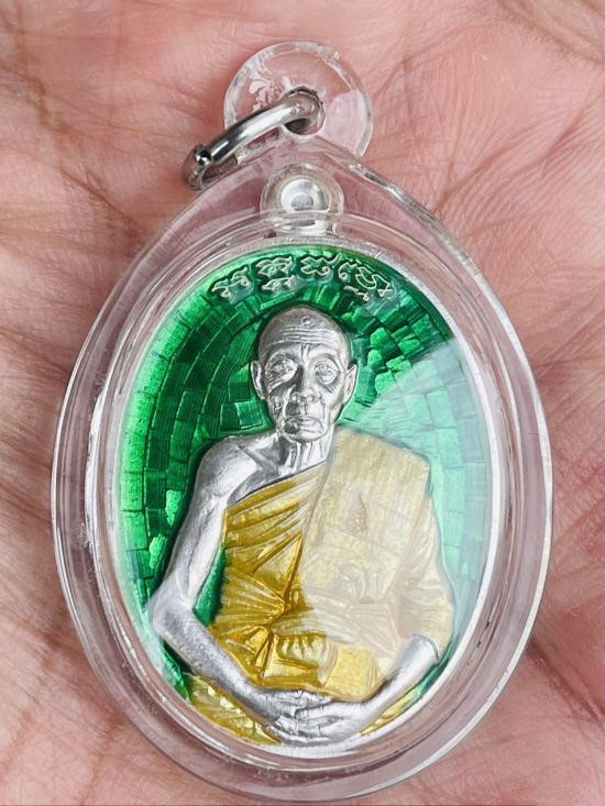 เหรียญมนต์พระกาฬ หลังหนุมาน หลวงพ่อเพี้ยน วัดเกริ่นกฐิน จ.ลพบุรี ปี59 เนื้อเงินลงยาเขียวเลขสวยมาก สภาพสวยเดิม เลี่ยมกันน้ำ |