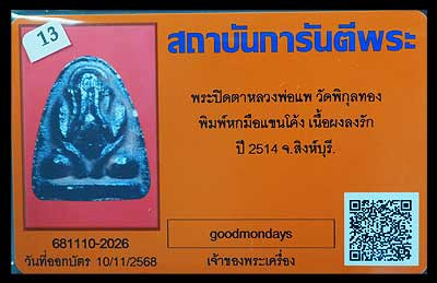 พระสมเด็จ คะแนน แพพัน หลวงพ่อแพ วัดพิกุลทอง ปี 2510 + บัตร G Pra ครับ |
