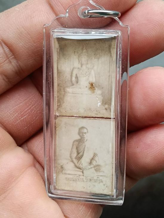 วัดใจ เคาะเดียว รูปถ่ายพระพุทธ และรูปภาพหลวงพ่อเพี้ยน วัดเกริ่นกฐิน เจ้าของเดิมเลี่ยมคู่กันเอาไว้ ไม่ทราบปี |