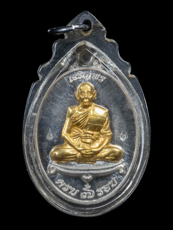 หลวงพ่อเพี้ยน วัดเกริ่นกฐิน รุ่นเพชรกลับทรัพย์ทวีเพิ่มพูน ฐานวงเดือน เสกไตรมาส ปี 55 เนื้อเงิน หมายเลข ๒๐๘๘ |