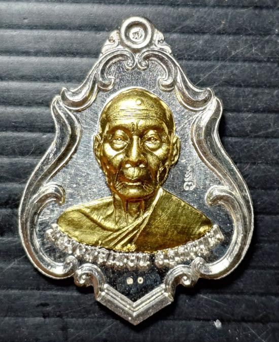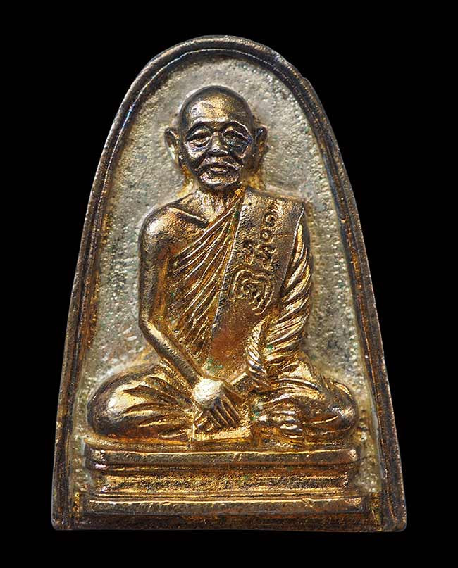 รูปเหมือนปั๊มหลังเตารีด เนื้อเงินหน้ากากทองคำ ไตรมาส 54 หลวงพ่อเพี้ยน วัดเกริ่นกฐิน ลพบุรี |