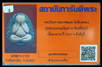 รูปเหมือนหลวงพ่อแพ ปี08 วัดใจแบ่งเพื่อนสมาชิก พร้อมบัตรรับรอง |