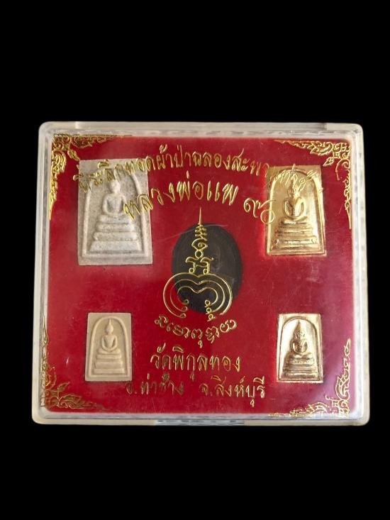เคาะแรกแดงเลย ที่ระลึกทอดผ้าป่า แพ90 หลวงพ่อแพ วัดพิกุลทอง พ.ศ.2537 กล่อง |