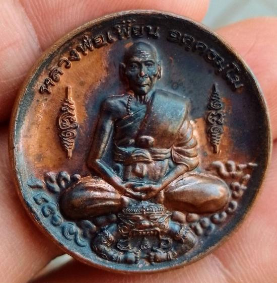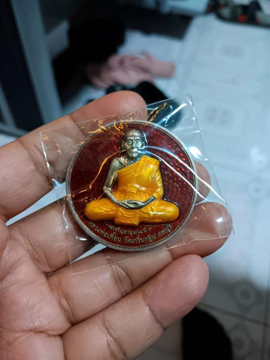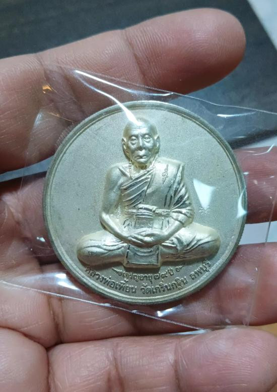 เหรียญหลวงพ่อเพี้ยน รุ่น เพี้ยนมั่งมี วัดเกริ่นกฐิน ปี 2550 ด้านหลังพระพิฆเนศ กะไหล่เงิน กล่องเดิม แดง120 |