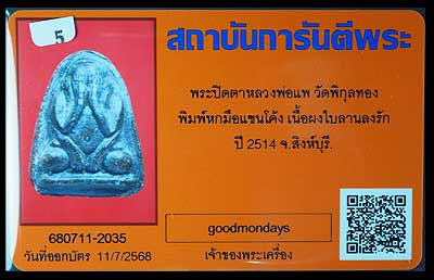 น้องใหม่วัดใจค่ะ//พระรอด หลวงพ่อแพ วัดพิกุลทอง เนื้อผงใบลาน ปี 2514 จ.สิงห์บุรี สวยๆพร้อมบัตรค่ะ |