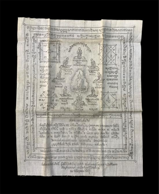 รูปถ่ายกระดาษไข่ปลา หลังผ้าจีวร ปั้มยันต์ หลวงพ่อแพ วัดพิกุลทอง ปี2517 เลี่ยมเก่า |