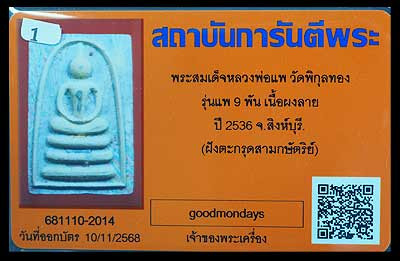 สมเด็จหลังรูปเหมือน หลวงพ่อแพ ปี.09 ....................100 |