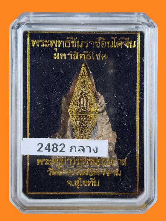 รูปหล่อโบราณพระพุทธชินราชอินโดจีน รุ่นมหาสิทธิโชค เนื้อชนวน พิมพ์กลาง หมายเลข 2482 สภาพสวยเดิมๆพร้อมกล่องครับ |