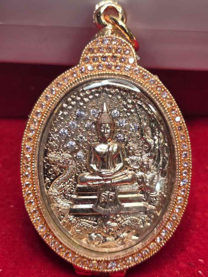 เหรียญหลวงพ่อโสธร รุ่นประวัติศาสตร์ 255 ปี เนื้อทองฝาบาตรซาติน หน้ากากชุบทองคำ ติดมวลสาร ตะกรุดทอวระฆัง 9 ดอก เลี่ยมกรอบชุบทองคำ พร้อมสร้อยหัวมังกร |