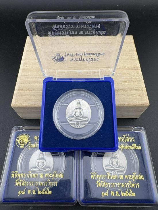 เหรียญสร้างอุโบสถ หลวงพ่อโสธร เนื้อเงินซาติน หลังโฮโลแกรม ปี๔๒ พร้อมกล่อง จำนวน 3 กล่อง |