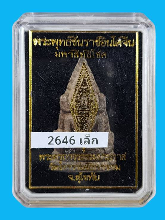 รูปหล่อโบราณพระพุทธชินราชอินโดจีน รุ่นมหาสิทธิโชค เนื้อชนวน พิมพ์เล็ก หมายเลข 2646 สภาพสวยเดิมๆพร้อมกล่องครับ |
