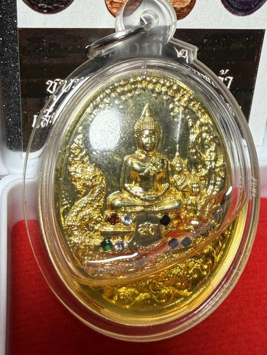 ((วัดสร้าง))เหรียญหลวงพ่อโสธรรุ่นประวัติศาสตร์ครบรอบ 255 ปี วาระพิเศษ เหรียญชุบทองฝังพลอยนพเก้าเลี่ยมน้ำมันตะเกียงวัดโสธร โค้ตเลข 98 พร้อมกล่องเดิม |