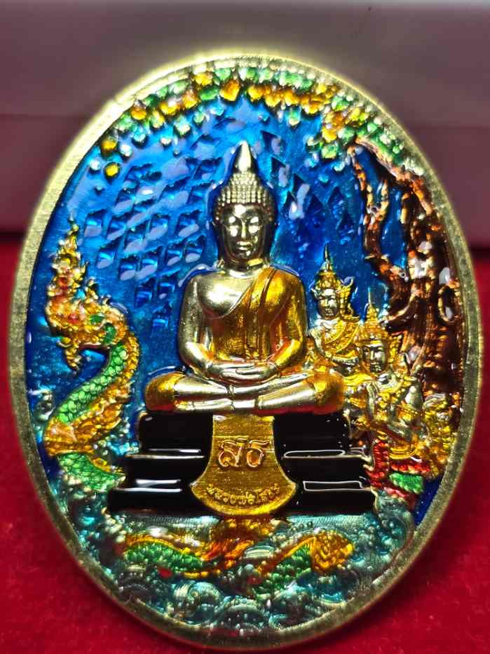((วัดสร้าง))เหรียญหลวงพ่อโสธรรุ่นประวัติศาสตร์ครบรอบ 255 ปี วาระพิเศษ เหรียญชุบทองลงยาเขียว ลงยาทรงเครื่องหลังลงยาพื้นแดง ลงยาตราวัดหน้ากากเงินแท้ลงยาฐานแดง โค้ตเลข 95 พร้อมกล่องเดิม |