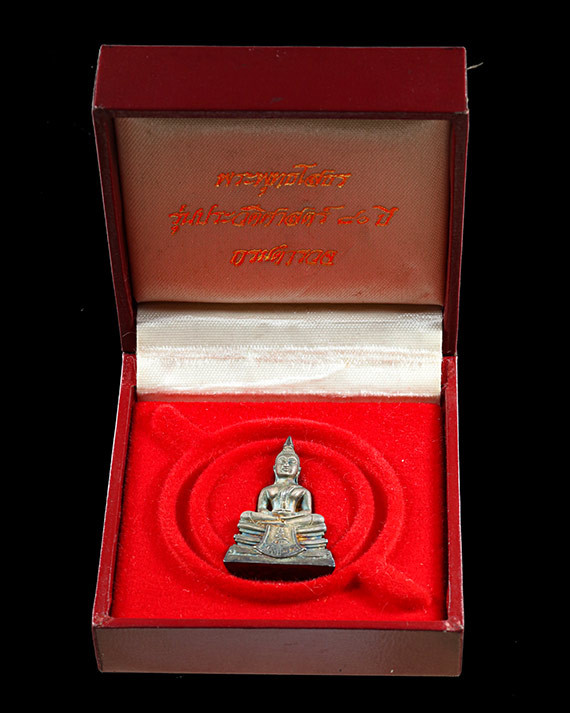 พระพุทธชินราชใบเสมา รุ่นประทานพร เนื้อชินเงิน หรือเนื้อปรอทขาว จัดสร้างขึ้นในปี 2547 มาพร้อมกล่องเดิมจากวัดครับ ข้างหลังด้านล่างตอกโค้ด นะ ขนาดองค์พระ สูง 4.0 ซม. กว้าง 2.5 ซม.ครับ 7 |
