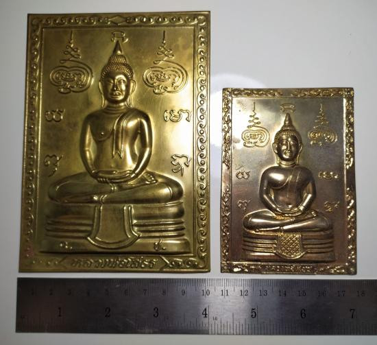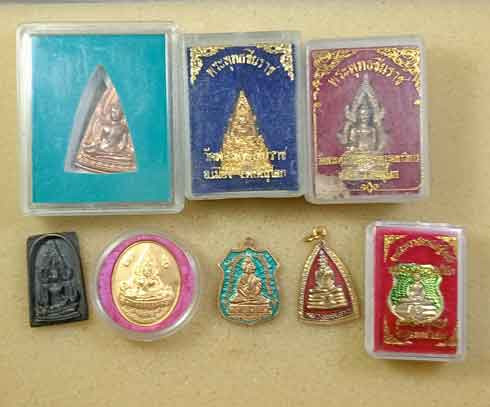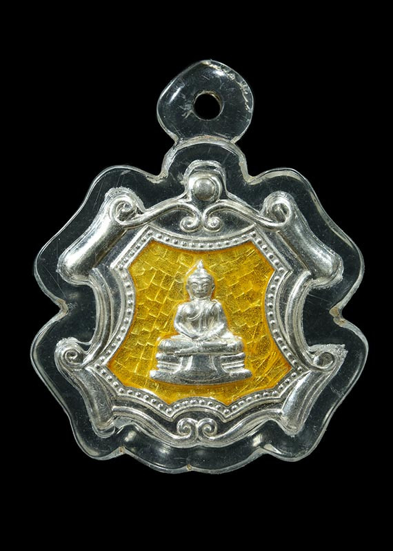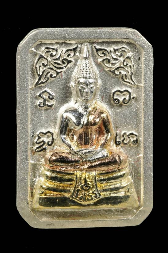 ** เคาะแรกแดงที่ 150 บาท ** พระพุทธชินราชลอยองค์ พิมพ์เล็ก เนื้อเงินชุบ 3 กษัตริย์ รุ่นเพราะแผ่นดินนี้คือแผนดินเกิด รุ่นแรก ปี 2548 หมายเลข 19066 |