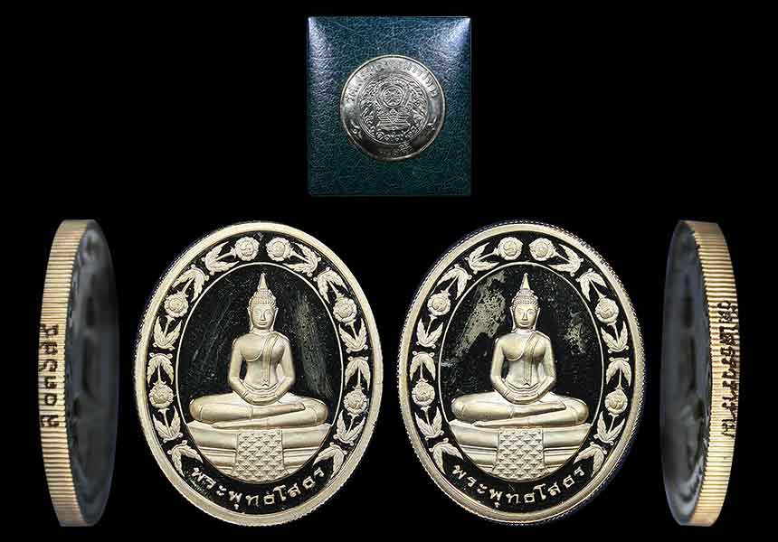 เหรียญพระพุทธโสธรฯ รุ่นนานาชาติ รุ่นแรก วัดโสธรฯ (โรงงานกษาปณ์เพิร์ธ) ปี 2537 เนื้อเงิน 999.90% |