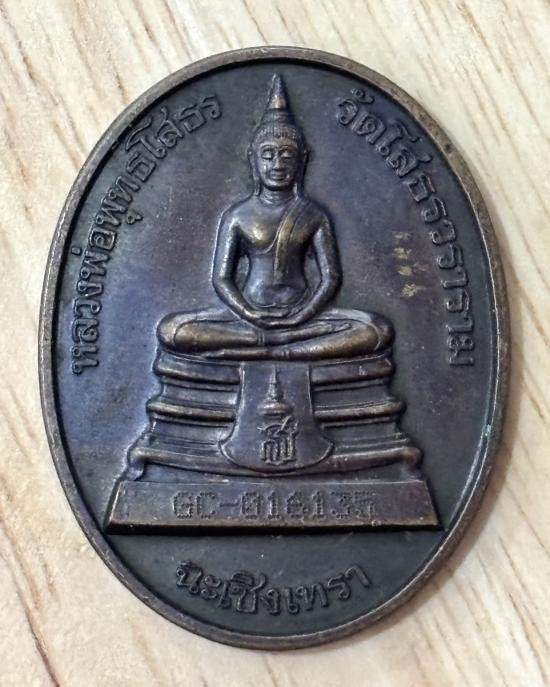 หรียญหลวงพ่อโสธร วัดโสธรวราราม เนื้อเงิน (น้ำหนักเหรียญ 2.4 กรัม) หมายเลข 40510 ปี พ.ศ.2539 เนื่องในโอกาศที่ในหลวงรัชการที่ 9 ทรงครองศิริราชสมบัติครบ 50 ปี จ.ฉะเชิงเทรา |