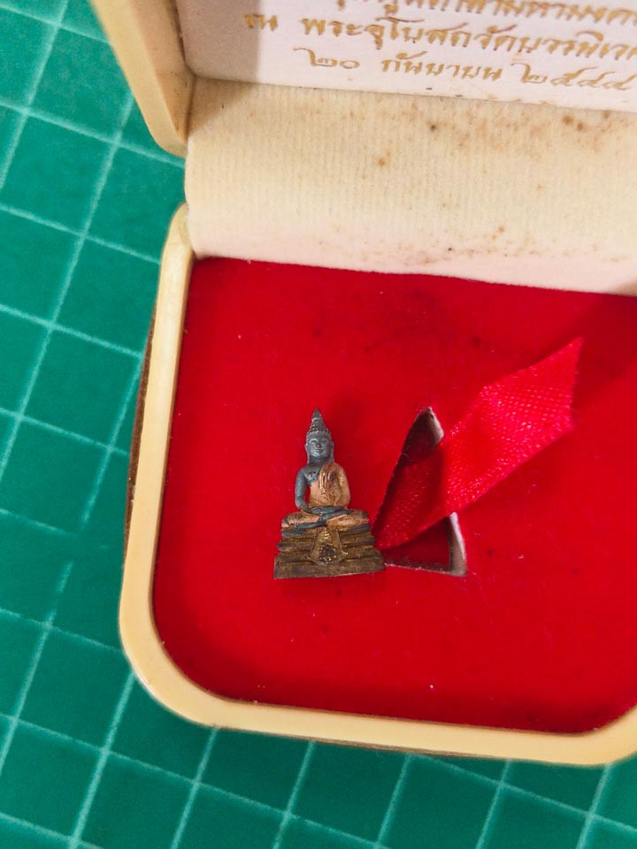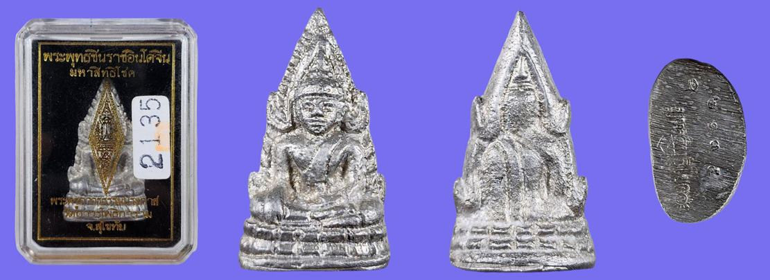 รูปหล่อโบราณพระพุทธชินราชอินโดจีน รุ่นมหาสิทธิโชค เนื้อชนวน พิมพ์กลาง หมายเลข 1517 สภาพสวยเดิมๆพร้อมกล่องครับ |
