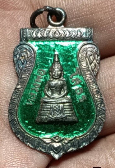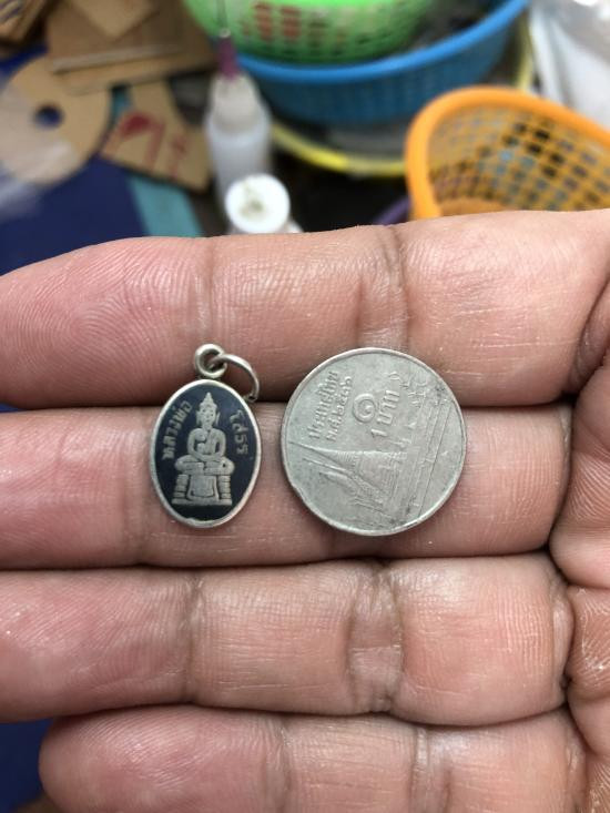 เคาะเดียวเหรียญแสตมป์เนื้อเงินลงยาหลวงพ่อโสธรไม่ทราบปีสวยสวย |