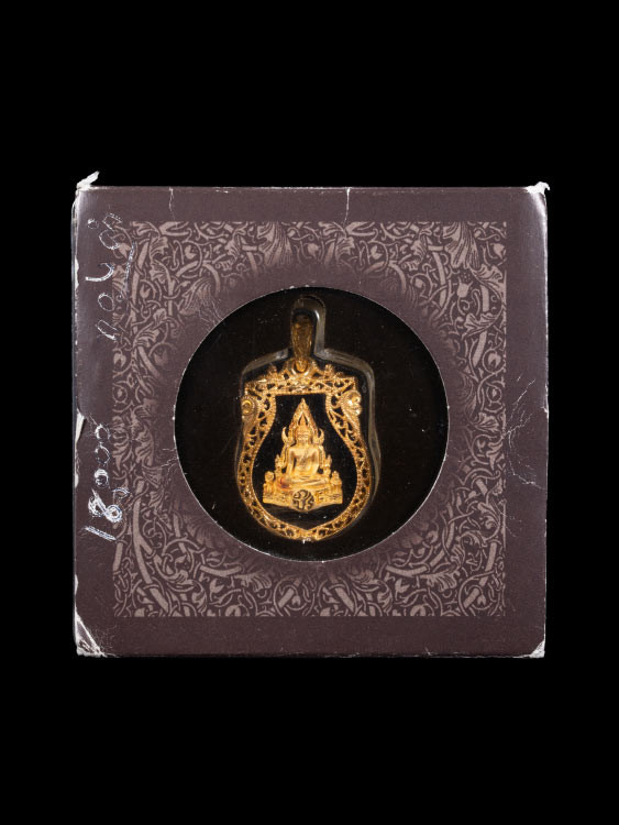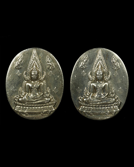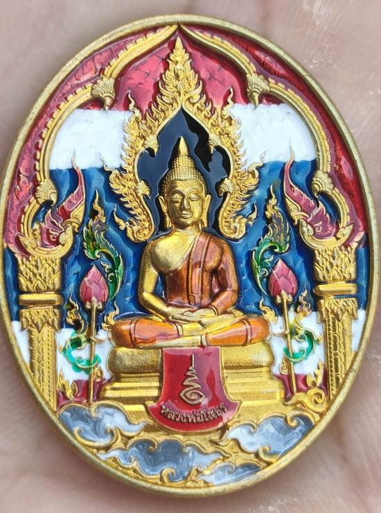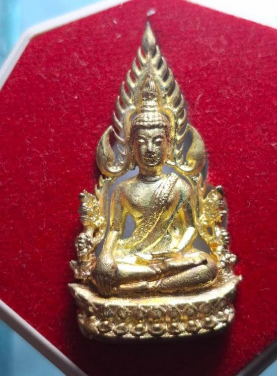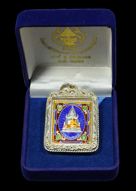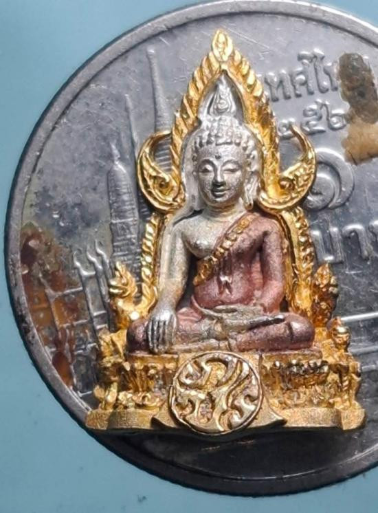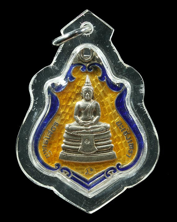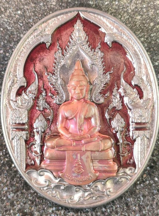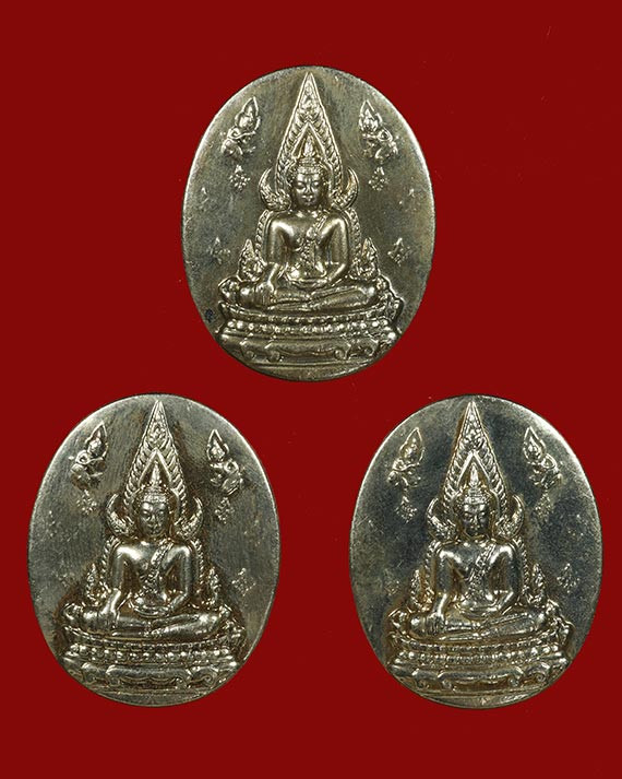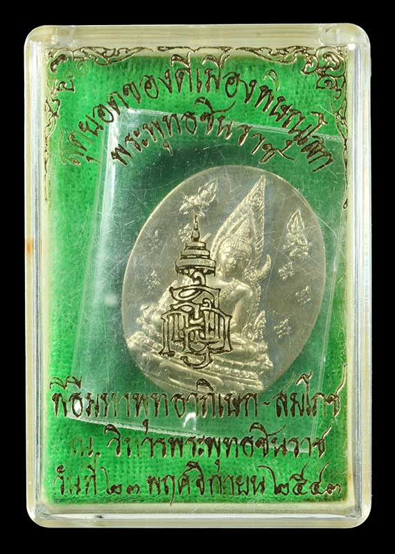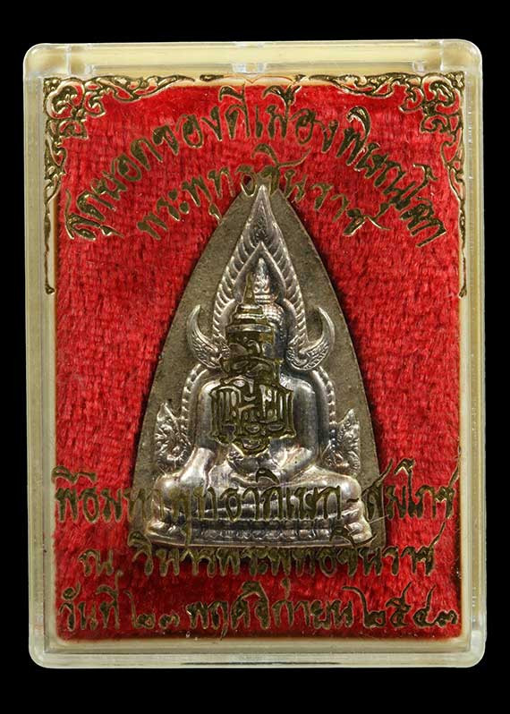 ** เคาะแรกแดงที่ 150 บาท ** พระพุทธชินราชลอยองค์ พิมพ์เล็ก เนื้อเงินชุบ 3 กษัตริย์ รุ่นเพราะแผ่นดินนี้คือแผนดินเกิด รุ่นแรก ปี 2548 หมายเลข 19066 |