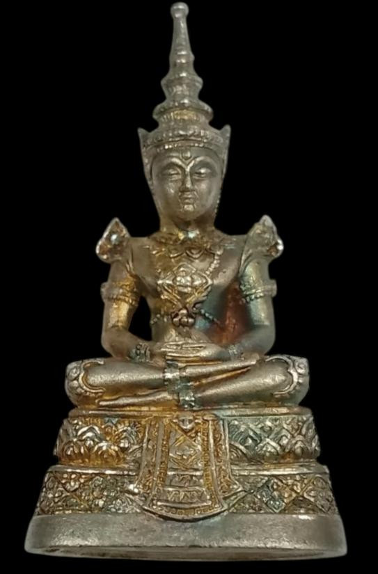 พระแก้วมรกต กรมสรรพสามิต จัดสร้างโดยวัดพระศรีรัตนศาสดาราม เนื้อเงินขัดเงา หมายเลขสวยครับ ๗๒๒๒๗ มีคราบปรอทเหลืองเหลือบรุ้ง ปี 2539 สภาพสวยพร้อมกล่องเดิม |