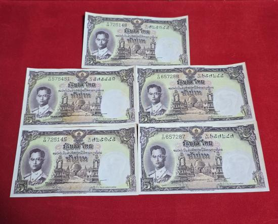 ** ธนบัตร 5 บาท แบบ 9 โทมัส จำนวน 5 ใบ สภาพไม่ผ่านการใช้ *** |