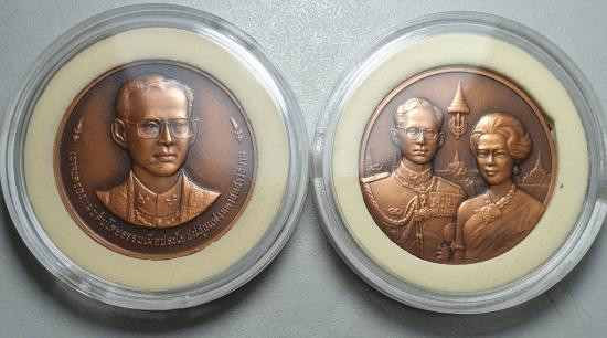 เหรียญ 50ปี (บรมราชภิเษก+ราชาภิเษกสมรส)เนื้อทองแดงซาติน ปี2543 ยกคู่ |