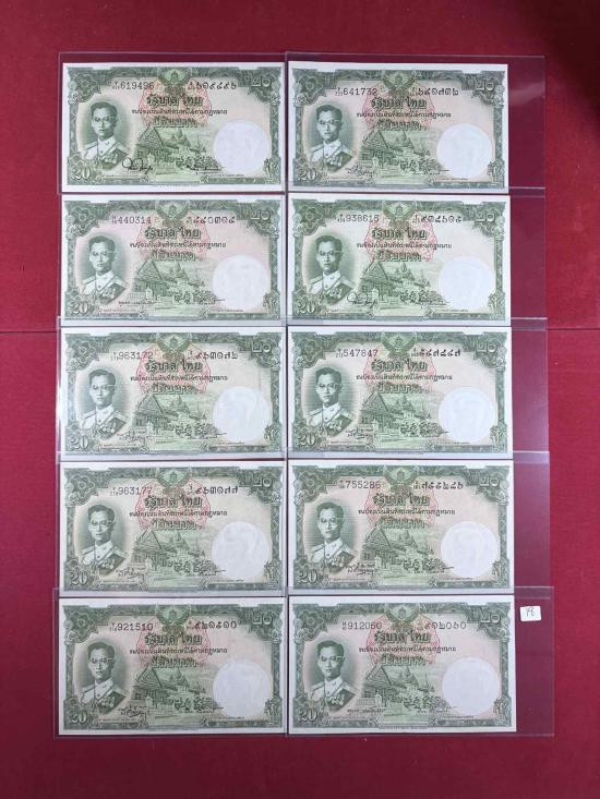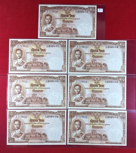 ธนบัตร 10 บาท แบบ9 พิมพ์โทมัส จำนวน 7ใบ เลขเรียง 9-15 สภาพสวยตามรูป |