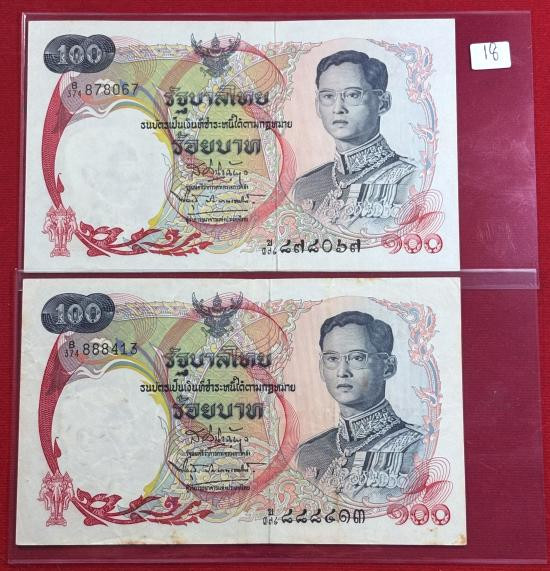 ร.9 ธนบัตร100- แบบ11 / 2ฉบับ สวยๆ ขอบเหลืองนิดๆ |