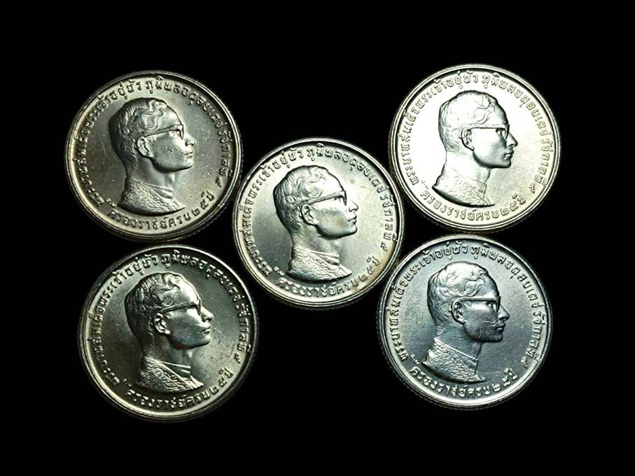 จำนวน 5 เหรียญ เหรียญในหลวงรัชการที่ 9 (ร.9) หลัง.ภ.ป.ร ปี ปี เนื้อเงิน (น้ำหนัก 5 เหรียญรวม 24.9 กรัม) พ.ศ.2514 ครองราชย์ครบ 25 สภาพสวยๆ |