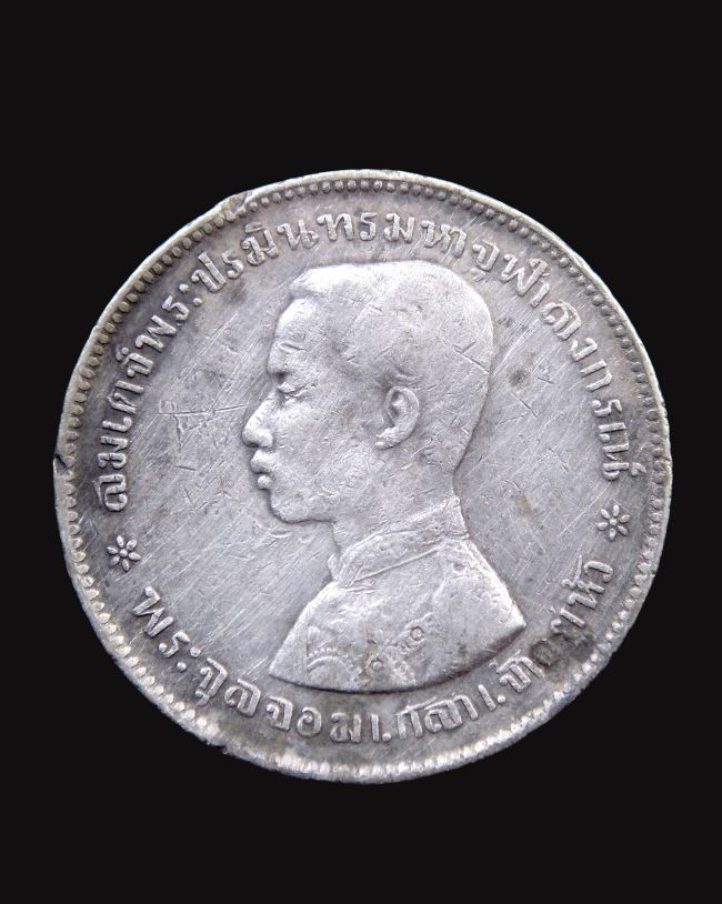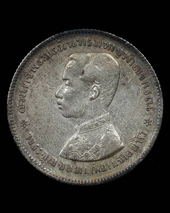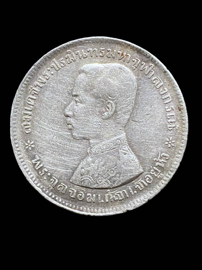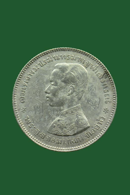 เหรียญบาทหนึ่่ง รัชกาลที่ 5 พระจุลจอมเกล้าเจ้าอยู่หัว (ร.5) หลังตราแผ่นดิน |