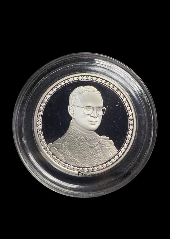 เหรียญเนื้อเงิน ( เหรียญที่ 2 ) ที่ระลึกพระราชพิธีถวายพระเพลิงพระบรมศพ ร.9 ตลับพลาสติกใส และใบเซอร์ ครบชุด เหรียญ ผ่าศูนย์กลาง 35 มม. โลหะเงินร้อยละ 92.5 นน.22 กรัม |