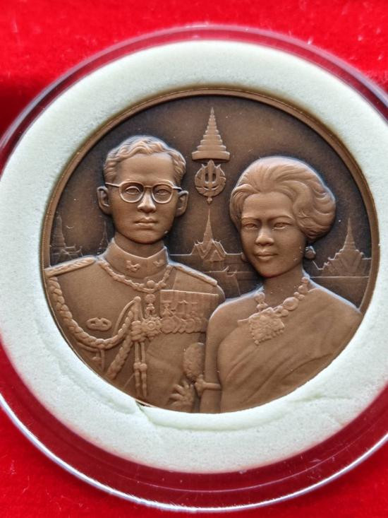 เหรียญ พระบาทสมเด็จพระปรมินทรมหาภูมิพลอดุลยเดช * สมเด็จพระนางเจ้าสิริกิติ์พระบรมราชินีนาถ ที่ระลึกในการเสด็จพระราชดำเนินเยือนสหรัฐอเมริกาและทวีปยุโรป (บล็อกนอก เนื้อเงิน ) ปี 2503 |