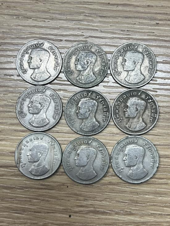 +++ เหรียญ 1 บาท มหาบพิธ เหรียญครุฑปี 17 ผ่านใช้ จำนวน 9 เหรียญ +++ |
