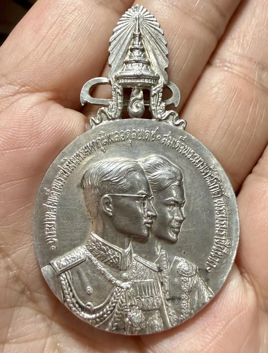 เหรียญเงินแพแถบเจ้าฟ้าชาย ร.10 ที่ระลึกพระราชพิธีสถาปนาสมเด็จพระบรมโอรสาธิราช ปี15 ซองเดิม |