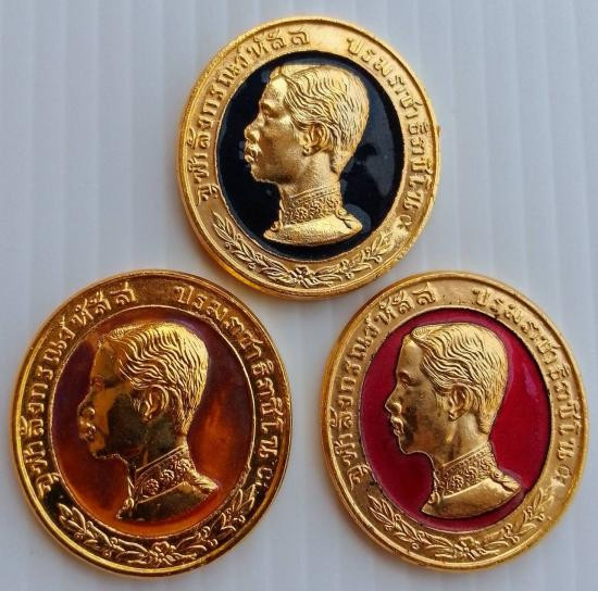 เหรียญรัชกาลที่ 5 (สามสมเด็จ) รพ. สมเด็จ ณ ศรีราชา เนื้อเงิน ปี 2535 |
