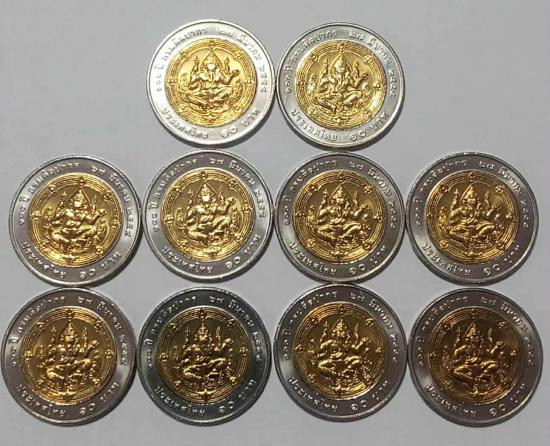 เหรียญที่ระลึก 10 บาท วาระ 100 ปีกรมศิลปากร ด้านหลังเป็นรูปพระพิฆเนศ เทพแห่งความสำเร็จ สภาพไม่ผ่านการใช้งาน UNC จำนวน 10 เหรียญ ครับ |