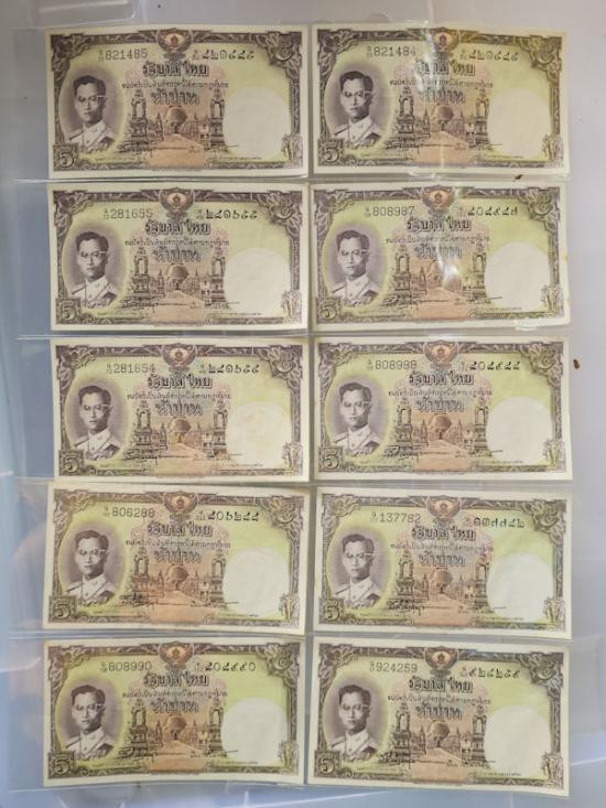 ธนบัตร รัชกาลที่ 9 ชนิดราคา 5 บาท แบบ 9 (โทมัส) สภาพสวย เลขสวย จำนวน10ใบ เคาะเดียว |