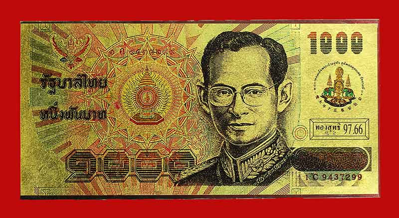 วัดใจ ไปเลยครับ ธนบัตรทองคำ"9หน้า-9หลัง ที่ระลึก(ทรงครองสิริราชสมบัติครบรอบ50ปี) ทองสุทธิ 97.66 หายากครับ |