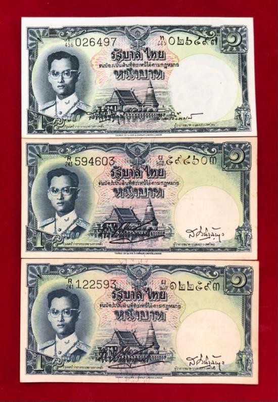 ร.9 ธนบัตร 1บาท โทมัส 3ฉบับ ไม่ผ่านใช้ 2ฉบับล่างคล้ำนิดๆติดเหลืองหน่อยๆตามรูปครับ |