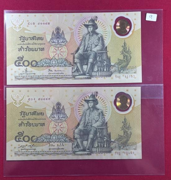 ธนบัตร 500 รัชกาลที่9 ที่ระลึกโพลิเมอร์กาญจนาภิเษก จำนวน 2 ใบ สภาพสวยตามรูป |
